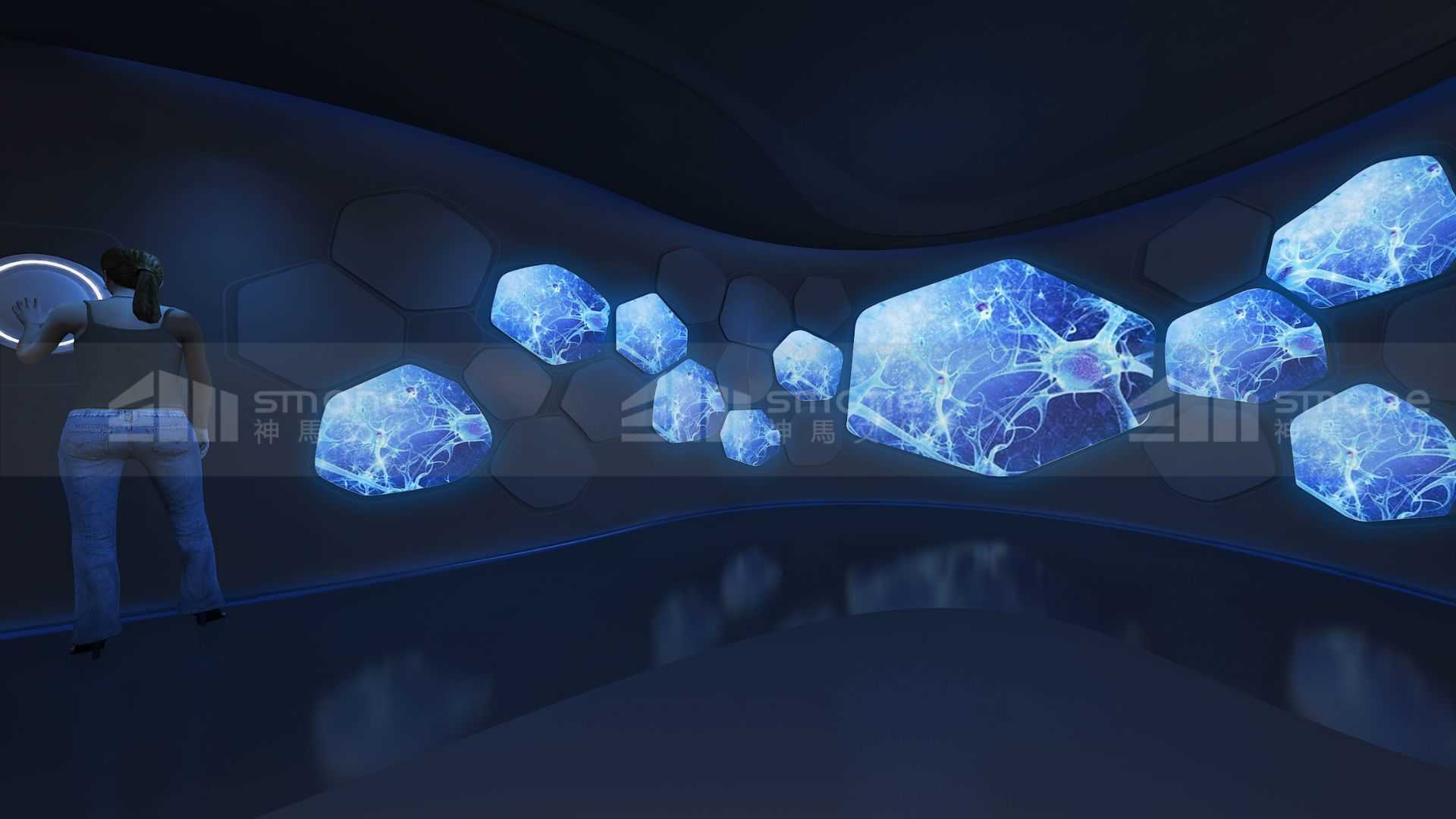 该项目以企业使命愿景出发,结合多媒体展示技术,通过动静结合的形式,全方位介绍干细胞。增加趣味互动性的同时,也能加深访客对展示空间内容的印象。