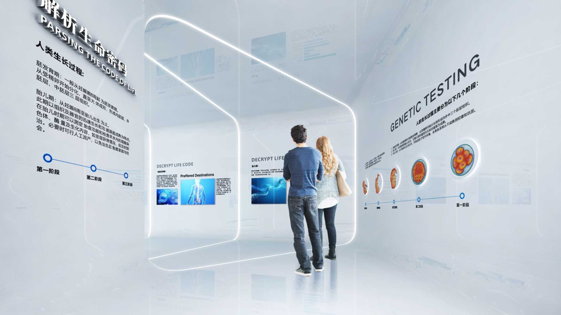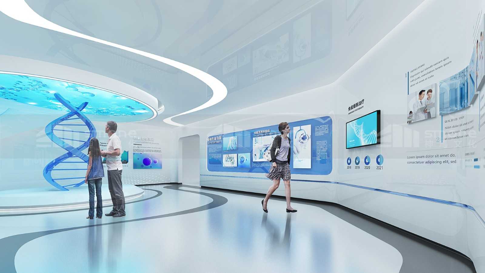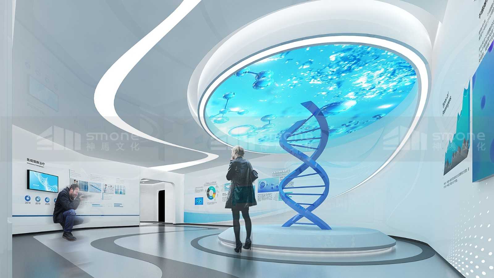 本项目从先康达的战略发展计划和使命愿景出发,根据企业特性,将展示内容进行整理和归纳,设计出访客的参观动线,让访客从解析生命、理解生命、感知感知、体验生命,再到展望未来的5个步骤全方位了解干细胞,了解东莞先康达。