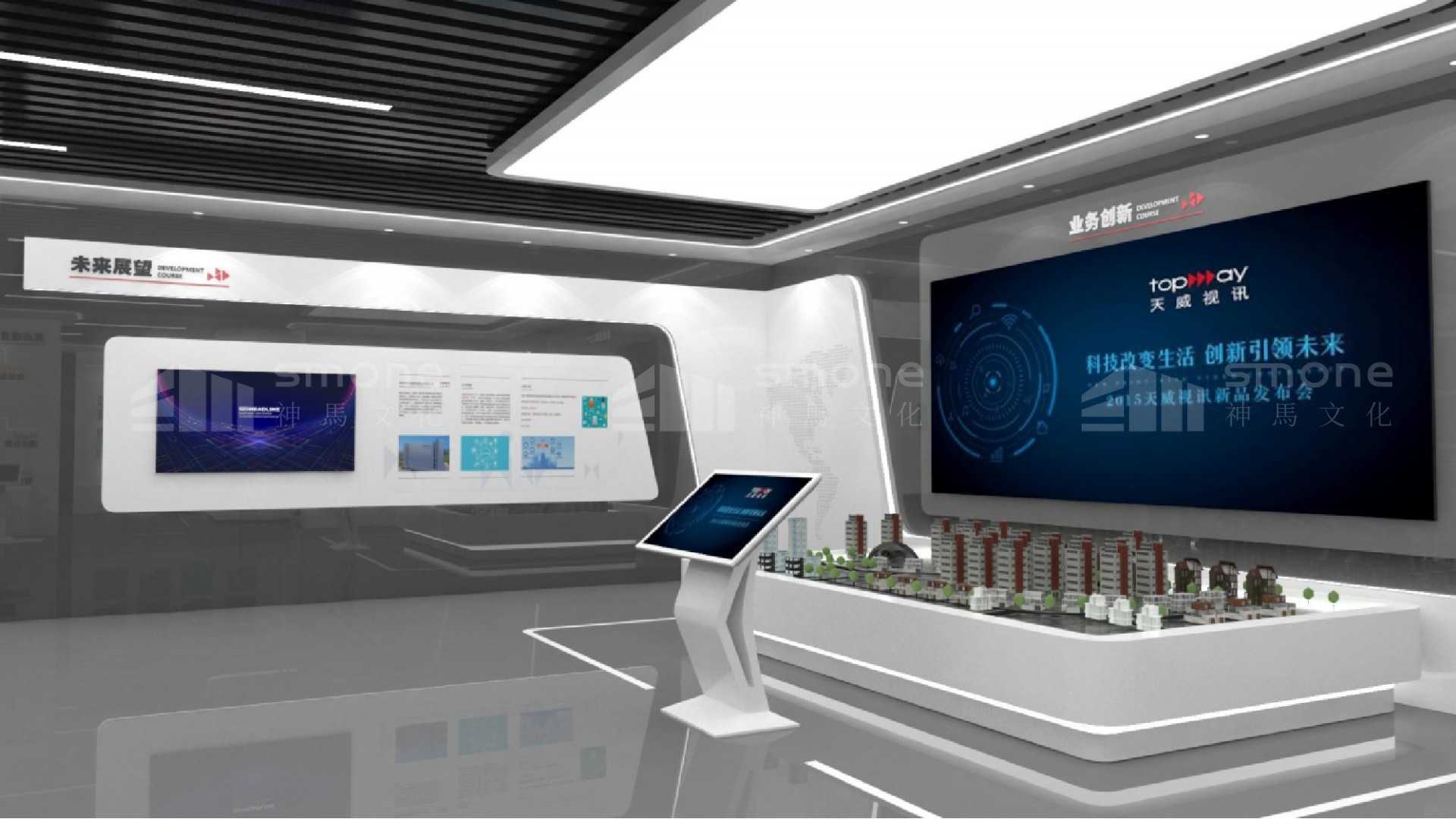 神马文化以打造行业标杆、创新特色、 国际理念的新概念企业展示馆为目的,打破传统展示形式 , 特别融入互动技术,以内容为核心,设置创意体验展项,调动观众参与性,实现展馆与受众间的最大化互动。做到真正让观众了解天威视讯文化、科创成果、让领导团队指导参观的平台窗口。